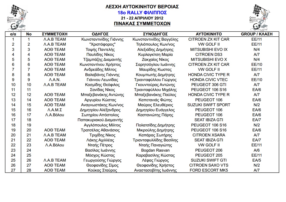 Δημοσίευση Re: 18ο Ράλλυ Φίλιππος (21-22/04/2012)