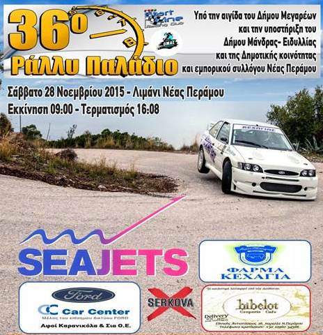 Η Start Line ανακοινώνει τη διοργάνωση του Ράλλυ Παλάδιο, που θα διεξαχθεί σε ασφάλτινες ειδικές διαδρομές της Δυτικής Αττικής, το Σάββατο 28 Νοεμβρίου 2015. Ο αγώνας βρίσκεται για ακόμη μια χρονιά υπό την αιγίδα του Δήμου Μεγαρέων, με το επίκεντρο να επιστρέφει (έπειτα από διάλειμμα ενός έτους) στο Λιμάνι Νέας Περάμου.