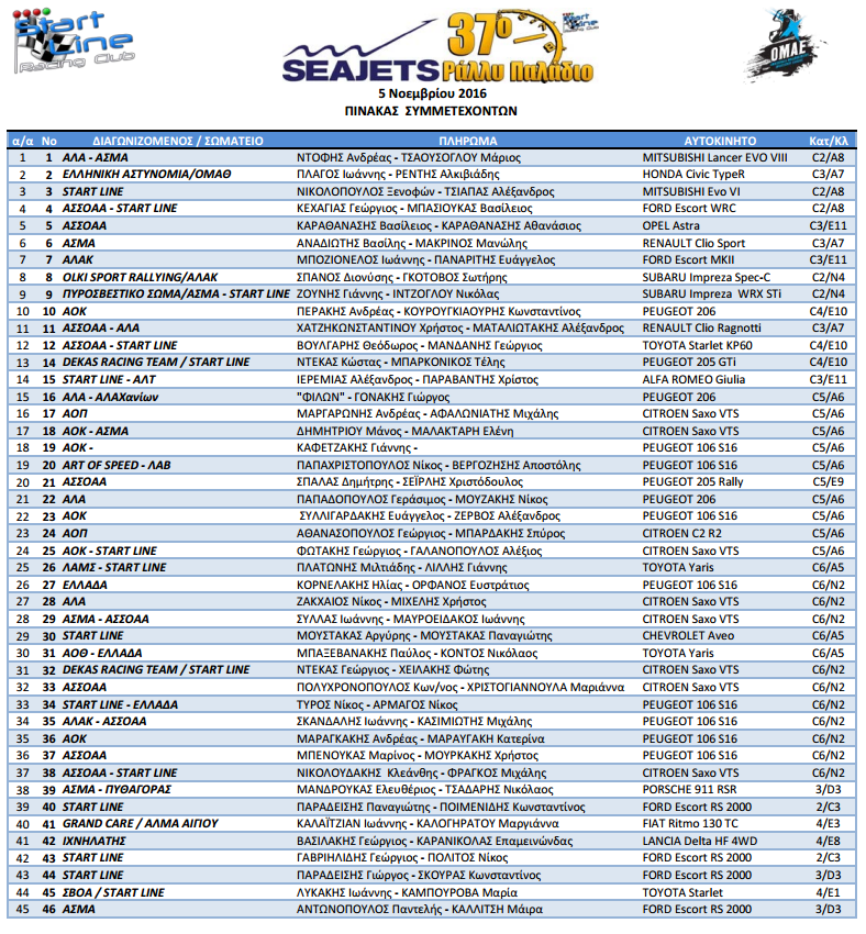 Παράθεση: Seajets 37ο Ράλλυ Παλάδιο - Σάββατο 5 Νοεμβρίου 2016Συνημμένο: