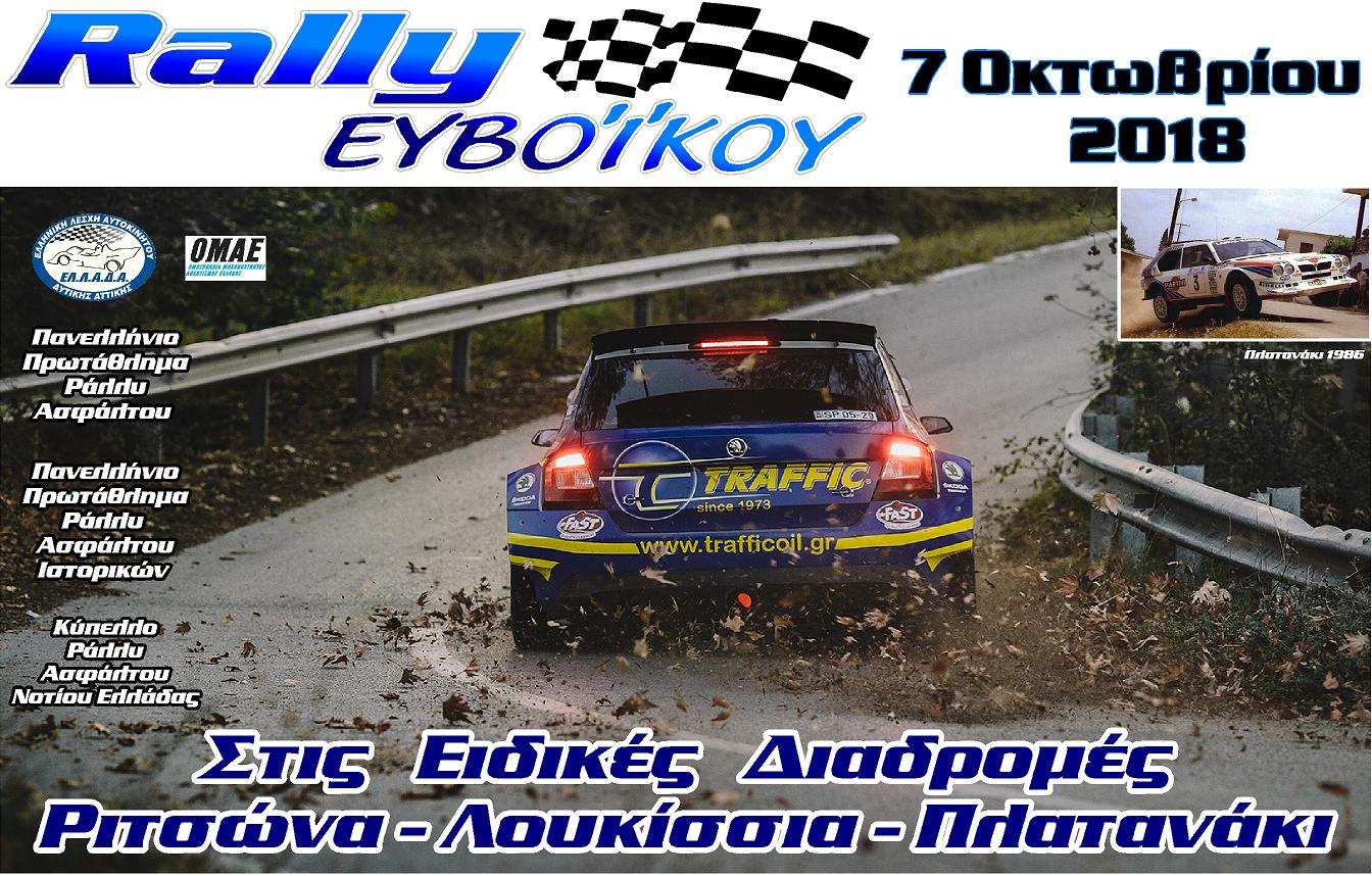 α Ράλλυ επιστρέφουν μετά τη δεκαετία του 1980 στις φημισμένες ειδικές διαδρομές της ανατολικής Στερεάς - στα Λουκίσια, στο Πλατανάκι και στη Ριτσώνα! Η Ελληνική Λέσχη Αυτοκινήτου Δυτικής Αττικής διοργανώνει στις 7 Οκτωβρίου 2018 το Ράλλυ Ευβοϊκού, το οποίο προσμετρά στο Πανελλήνιο Πρωτάθλημα Ασφάλτου, στο Κύπελλο Ράλλυ Ασφάλτου Νοτίου Ελλάδος και στο Ενιαίο Skoda Cup ενώ ταυτόχρονα αποτελεί τον 3ο γύρο του Πανελληνίου Πρωταθλήματος Ράλλυ Ασφάλτου Ιστορικών αυτοκινήτων.