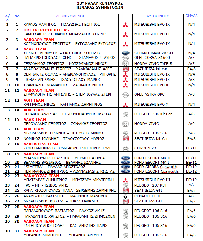 Δημοσίευση 33o Ράλι Κένταυρος 12-13 / 05 / 2012