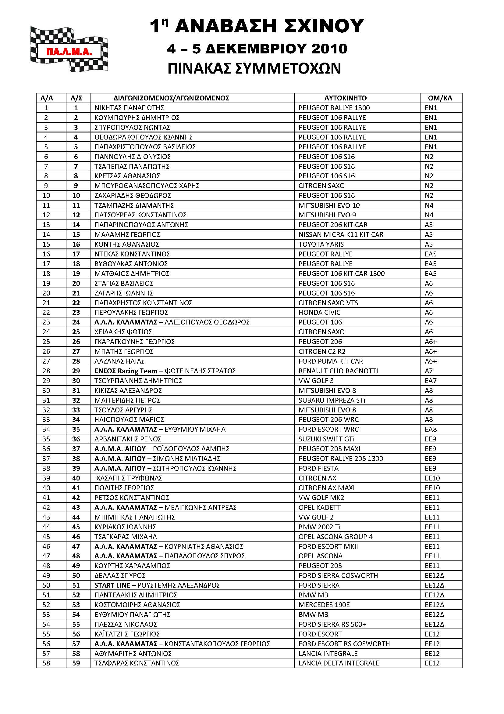 Ο αριθμός των συμμετοχών απλά απογοητευτικός ..... καινούργια ανάβαση δίπλα στην Αθήνα, άκρως ενδιαφέρουσα οδηγικά και δεν προτιμήθηκε από τους αγωνιζόμενους . Απλά και εφόσον οι περισσότεροι τίτλοι έχουν κριθεί θα είχαν την ευκαιρία να κάνουν δοκιμές εν όψει της νέας αγωνιστικής χρονίας αλλά και να προετοιμάστουν για την 2η ανάβαση Σχίνου η οποία ευελπίστω να γίνει του χρόνου και να μην είναι τελευταία.