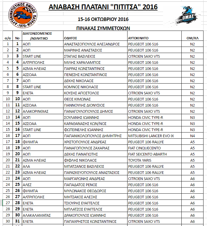 Εκκίνηση αγώνα ΚΥΡΙΑΚΗ 16 ΟΚΤΩΒΡΙΟΥ 2016 ώρα 10.00
