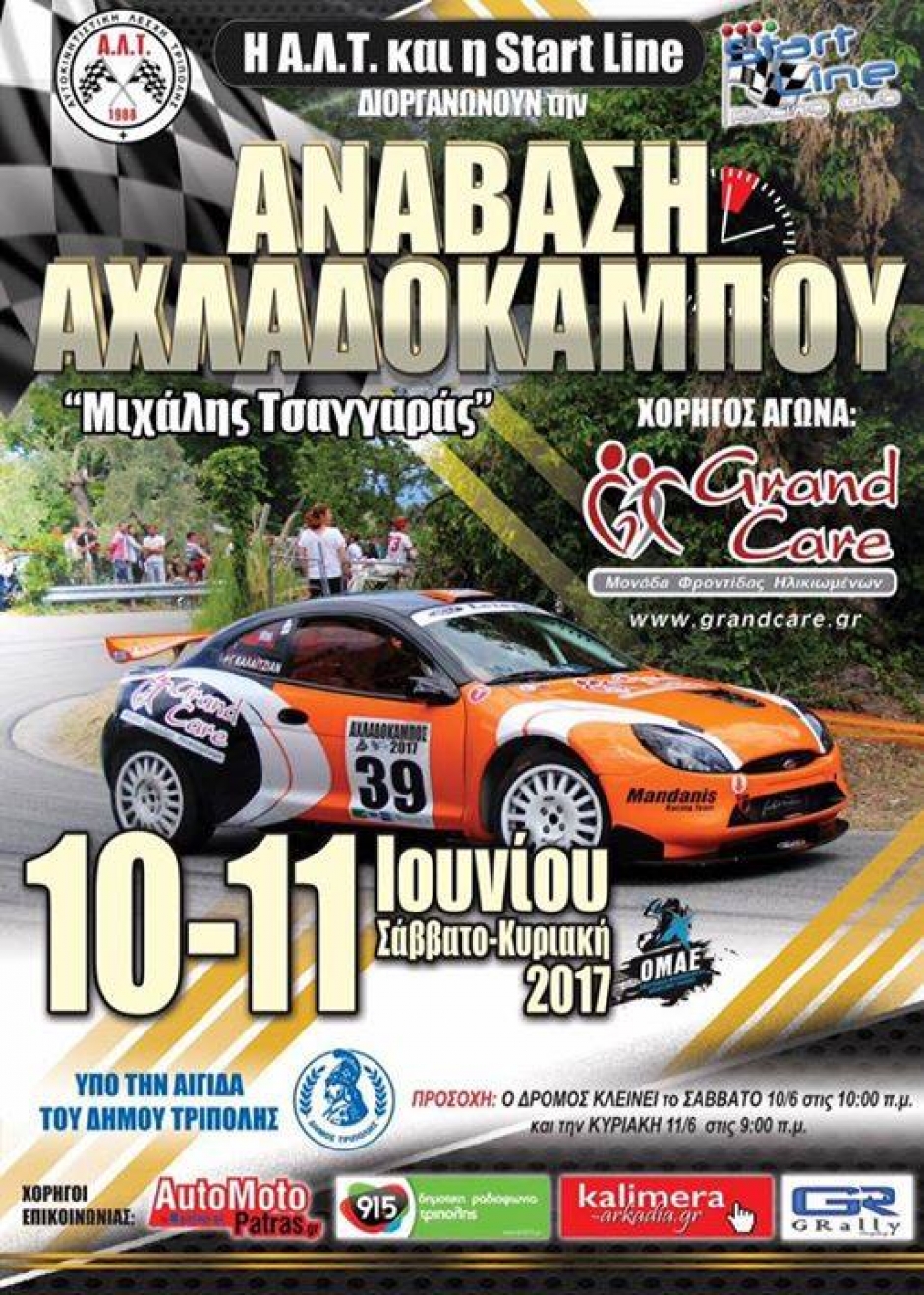 Η Ανάβαση Αχλαδόκαμπου 2017, αποτέλεσε τον 4ο γύρο του θεσμού και διοργανώθηκε από κοινού, από τα Αθλητικά Σωματείο "Αυτοκινητιστική Λέσχη Τρίπολης" (Α.Λ.Τ.) και Start Line. Η γνωστή και αγαπημένη διαδρομή μήκους 4,9 χιλιομέτρων, που βρίσκεται στην Παλαιά Εθνική Οδό Άργους-Τριπόλεως, στην περιοχή Κωλοσούρτη, υποδέχθηκε 99 οδηγούς οι οποίοι πρόσφεραν τον καλύτερό τους εαυτό, τόσο στα Χρονομετρημένα Δοκιμαστικά του Σαββάτου 10 Ιουνίου, όσο και στα δύο αγωνιστικά σκέλη της Κυριακής 11 Ιουνίου.