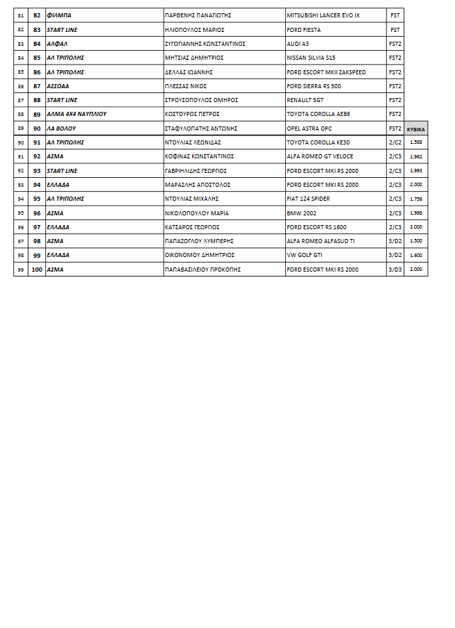 Όπως συμβαίνει με όλους τους αγώνες του Πρωταθλήματος, δικαίωμα συμμετοχής έχουν όλα τα αυτοκίνητα που εντάσσονται στις Ομάδες του θεσμού καθώς και επιμέρους Ομάδες, εφόσον έχουν προταθεί και εγκριθεί από την Επιτροπή Αγώνων της Ομοσπονδίας Μηχανοκίνητου Αθλητισμού Ελλάδος.