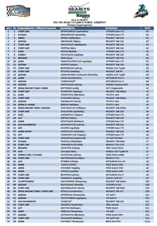 Διοικητικός και Αρχικός Τεχνικός Έλεγχος: Σάββατο 20 Μαΐου, ώρα 08:30-10:30 (Λιμάνι Κύμης)