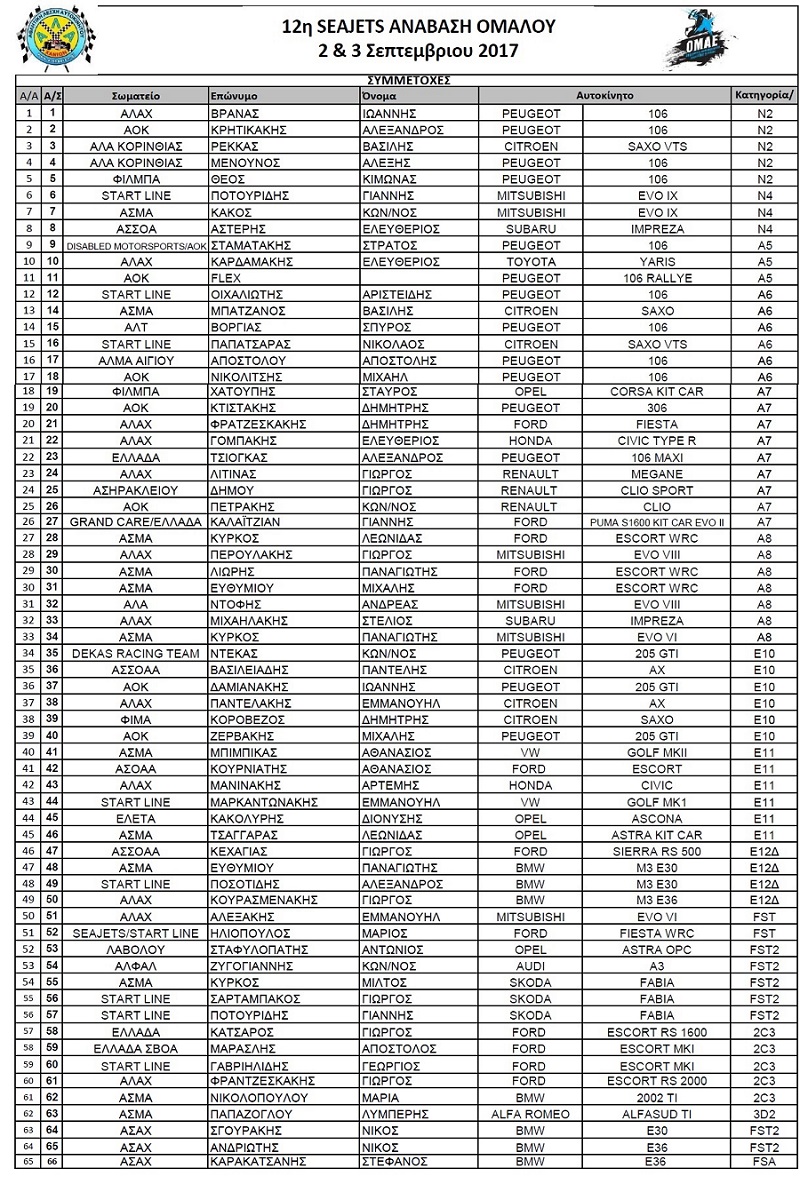 Αθρόα ήταν η συμμετοχή των οδηγών στη 12η πρωταθληματική Seajets Ανάβαση Ομαλού που θα πραγματοποιηθεί το προσεχές σαββατοκύριακο 2-3 Σεπτεμβρίου. Στον αγώνα δήλωσαν συνολικά συμμετοχή 65 πληρώματα από όλη την Κρήτη, αλλά και την υπόλοιπη Ελλάδα, ενώ αξίζει να σημειωθεί ότι ο αγώνας αποτελεί τον 6ο γύρο του Πανελληνίου Πρωταθλήματος.