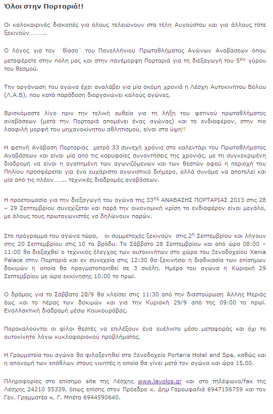 Δημοσίευση 33η Αναβαση Πορταριας 28-29/9 2013 ΛΑΒ