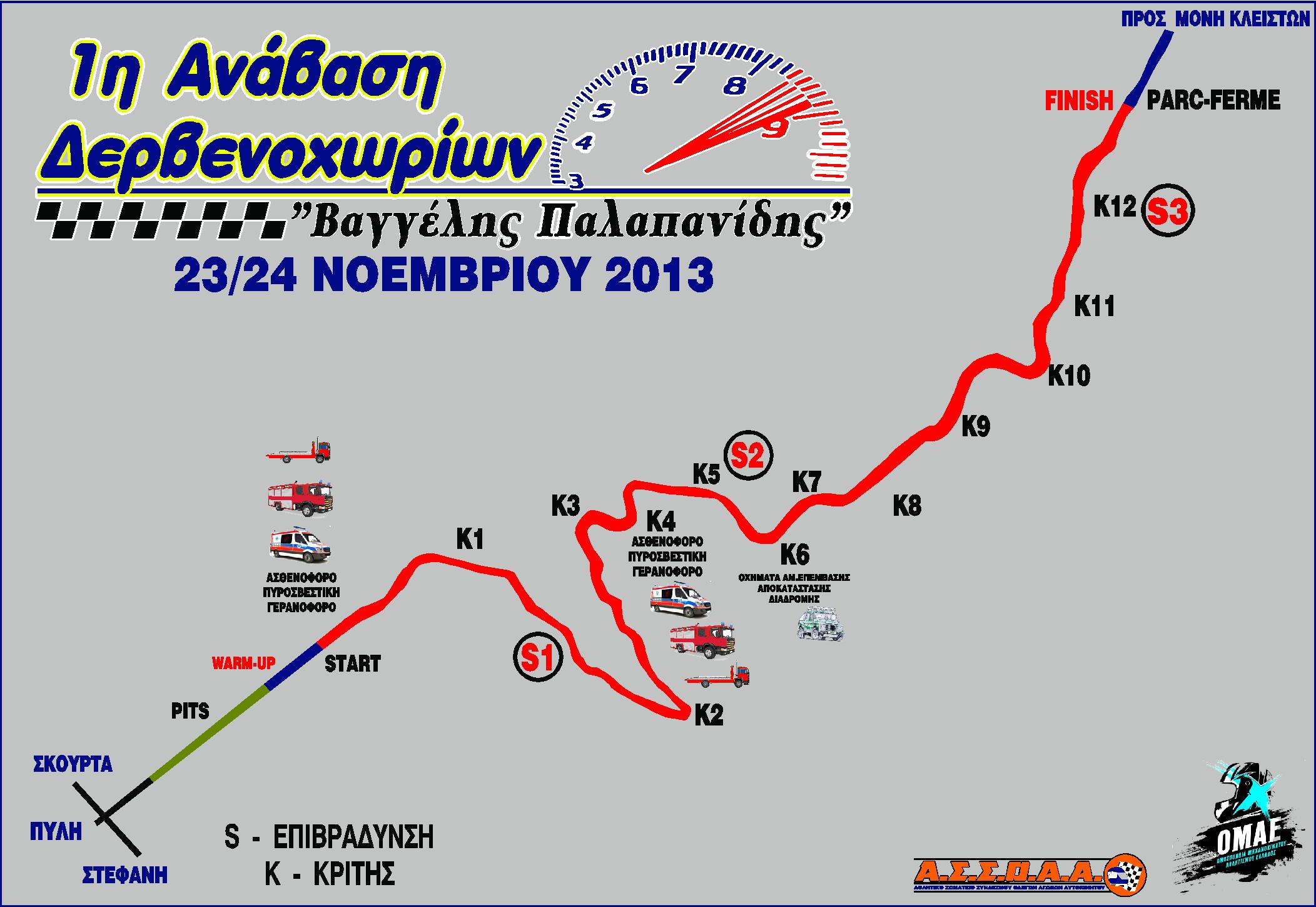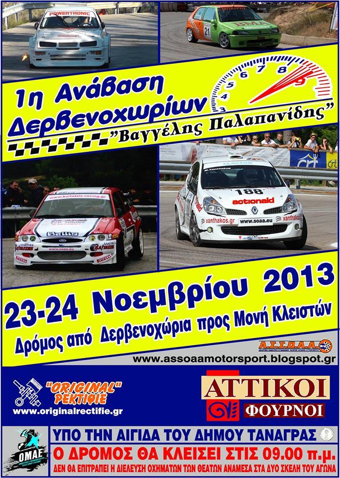 1η Ανάβαση Δερβενοχωρίων «Βαγγέλλης Παλαπανίδης» 23 &24 Νοεμβρίου 2013 Διοργάνωση Α.Σ.Σ.Ο.Α.Α. ΑΘΛΗΤΙΚΟ ΣΩΜΑΤΕΙΟ ΣΥΝΔΕΣΜΟΥ ΟΔΗΓΩΝ ΑΓΩΝΩΝ ΑΥΤΟΚΙΝΗΤΟΥ