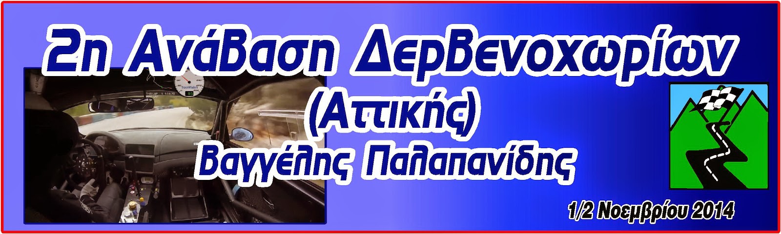 Το Αθλητικό Σωματείο Συνδέσμου Οδηγών Αγώνων Αυτοκινήτου (Α.Σ.Σ.Ο.Α.Α) βρίσκεται στην ευτυχή θέση να ανακοινώνει τη διοργάνωση της 2ης Ανάβασης Δερβενοχωρίων "Βαγγέλης Παλαπανίδης", στη διαδρομή από Δερβενοχώρια προς Μονή Κλειστών (Φυλή), το διήμερο 1-2 Νοεμβρίου 2014.