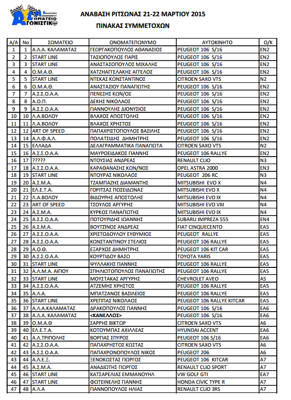 27 START LINE ΜΟΥΣΤΑΚΑΣ ΑΡΓΥΡΗΣ CHEVROLET AVΕO A5