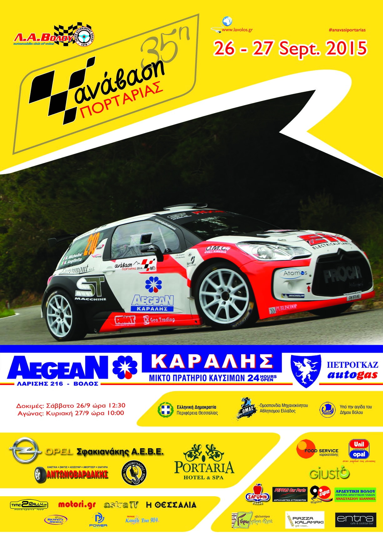 Το Αθλητικό Σωματείο «Λέσχη Αυτοκινήτου Βόλου» διοργανώνει για ακόμη μια χρονιά έναν από τους πιο γνωστούς και δημοφιλείς αγώνες αναβάσεων στη χώρα μας, την Ανάβαση Πορταριάς, το διήμερο 26-27 Σεπτεμβρίου 2015.