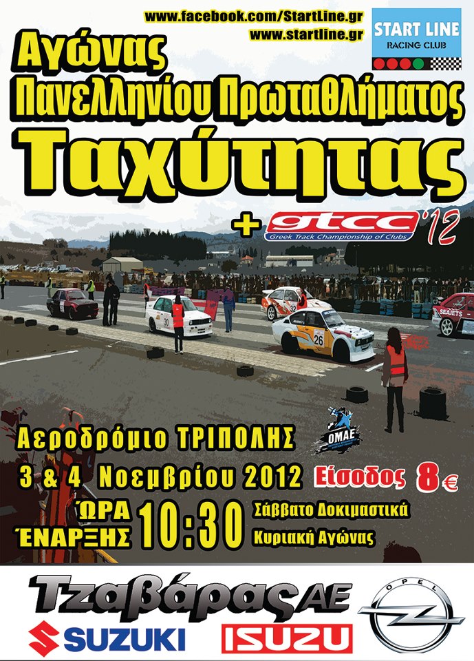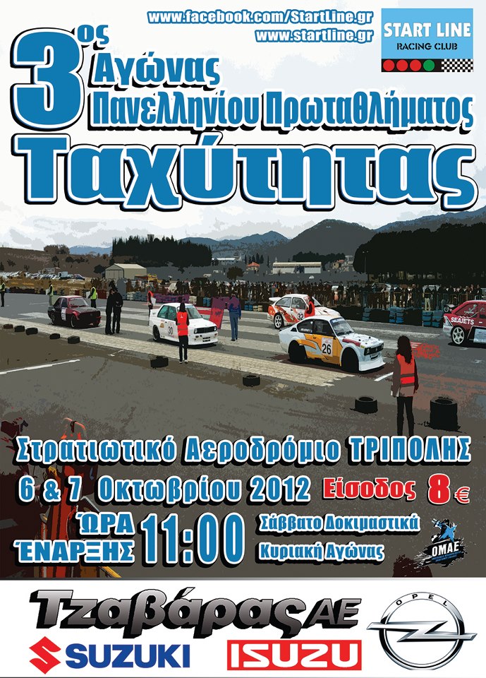 Συνέχεια για το Πανελλήνιο Πρωτάθλημα Ταχύτητας Αυτοκινήτων, με τον αγώνα που διοργανώνεται από την START LINE στις 3 & 4 Νοεμβρίου στο στρατιωτικό αεροδρόμιο της Τρίπολης με την υποστήριξη του Δήμου Τριπόλεως.