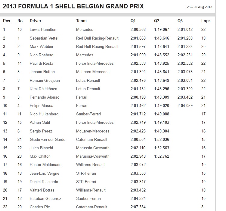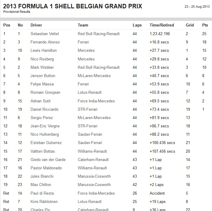 Νικητής στο Γκραν Πρι του Βελγίου ο Σεμπάστιαν Φέτελ.