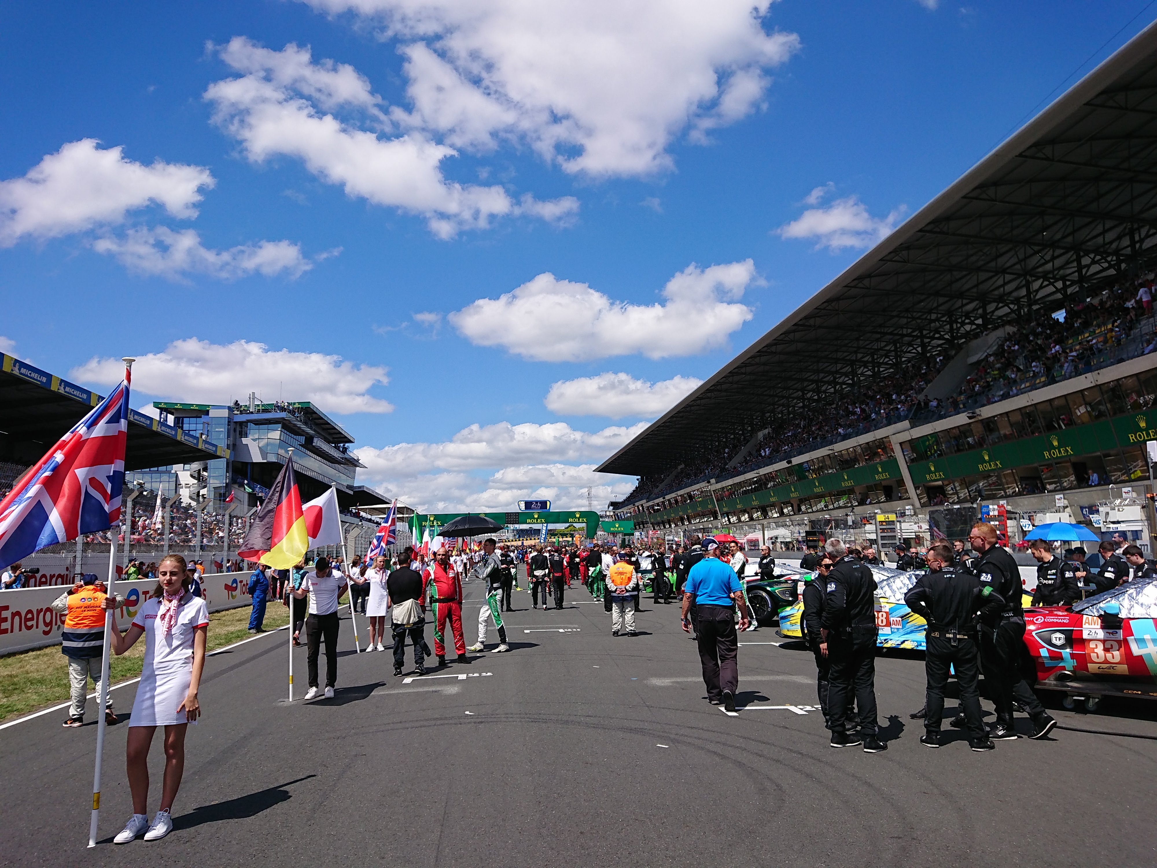 Πάμε στο γκρίντ λοιπόν, κανα 2ωρο πριν την εκκίνηση, να στηθούμε για τις φώτο κλπ. Φουλ κόσμος παντού, φωτογράφοι, δημοσιογράφοι, σόου απο την πολεμικη αεροπορια, το ελικόπτερο που φέρνουν την σημαία και άλλα παπατζιλίκια. Εκκίνηση στις 16:00...