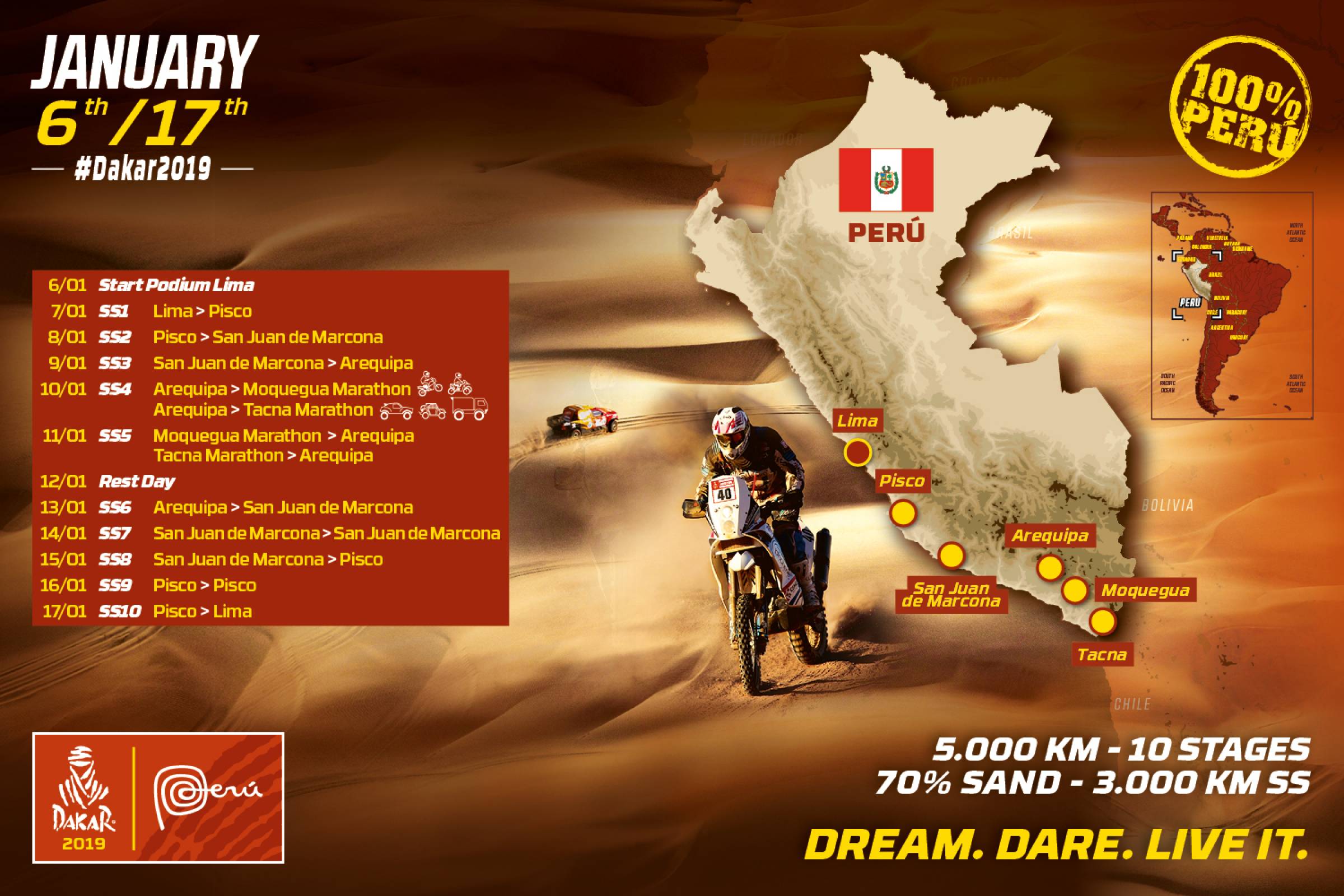To φετινο Dakar διεξαχθεί μονο στη χωρα του Περού και θα περιλαμβάνει τη μεγαλύτερη έκταση με αμμόλοφους που έχουμε δει όσα χρόνια το Dakar διεξάγεται στο Νότια Αμερική.