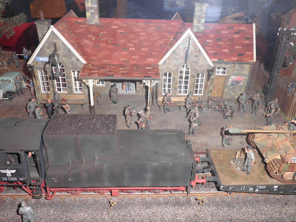 Μια εκπληκτικη μακετα απο ενα σιδηροδρομικο σταθμο με Γερμανικα στρατευματα....  Συνημμένο: