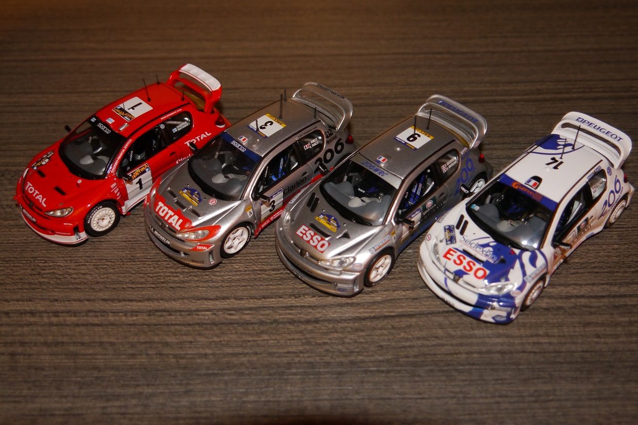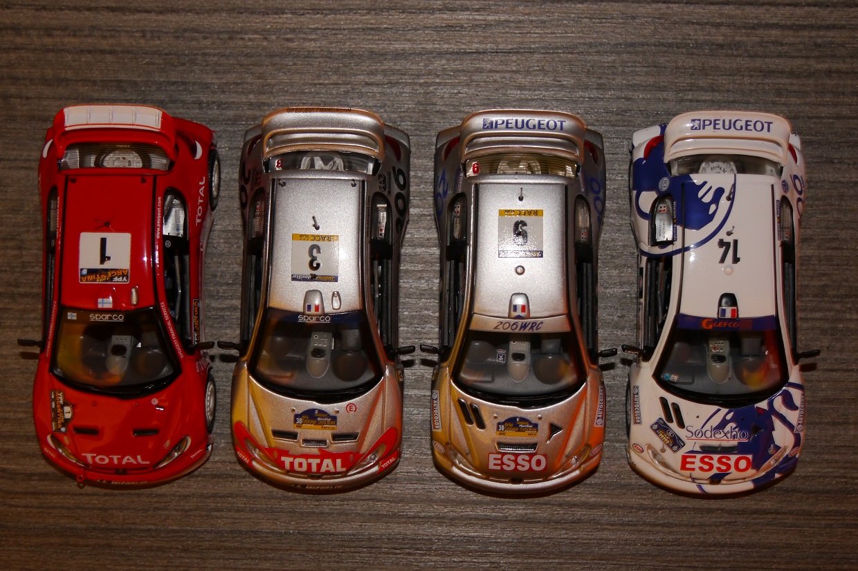 Λίγες φωτογραφίες με τα τέσσερα εργοστασιακά 206 WRC 1/43 που έχω.