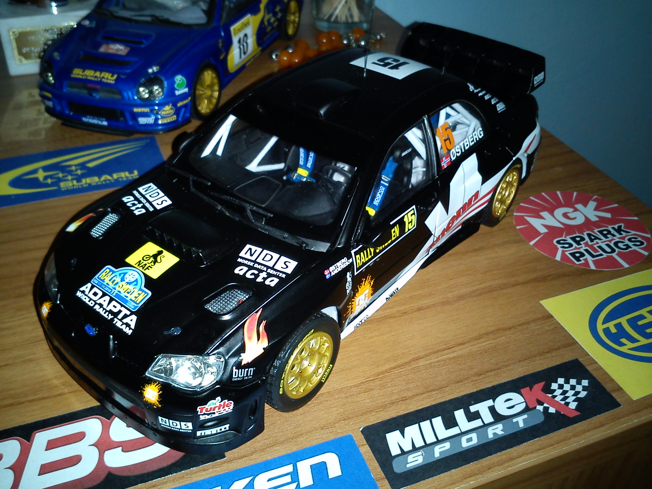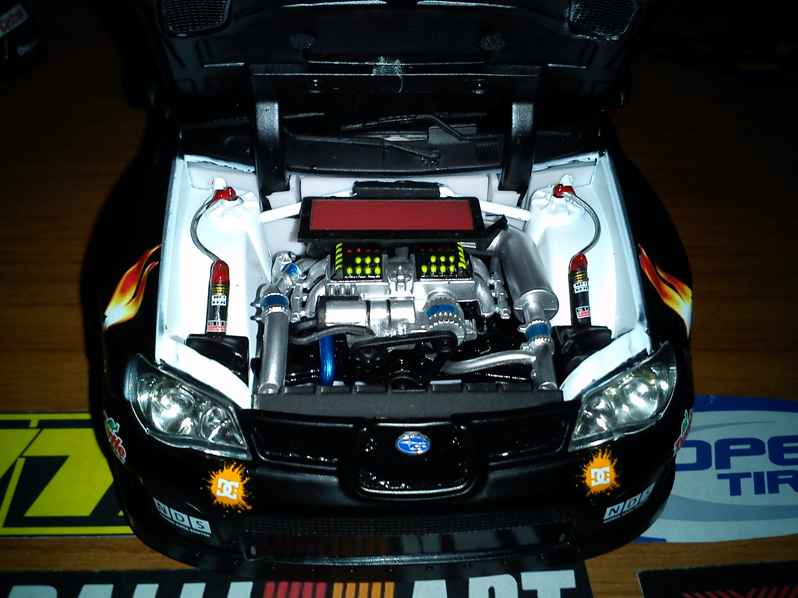 Eγώ πάντως είμαι αρκετά ικανοποιημένος για τα 35€ της καθαρής αξίας του. Εδικά αφού γυρνάνε τα δισκόφρενα και οι δαγκάνες ειναι σταθερές, δεν μιλάω καθόλου. Οι διαφορές όμως με το 2πλάσιας+ αξίας impreza της Autoart είναι εμφανής: Οι τροχοί έχουν αρκετά μπόσικα και "παίζουν". Τα αυτοκόλλητα δεν έχουν βερνίκι και σχετικά έυκολα μπορούν να γραντζουνιστούν. Οι πιάστρες του καπό είναι αυτοκόλλητο και όχι κολλημένο πλαστικό κομμάτι. Οι υαλοκαθαριστήρες και το παρμπρίζ δεν εφαρμόζουν απόλυτα.