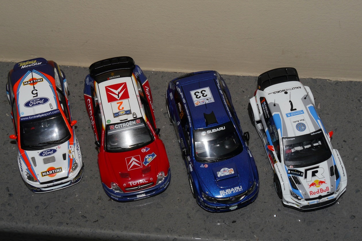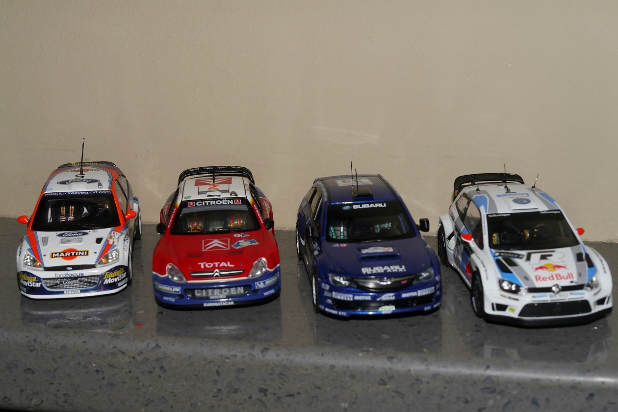 MINICHAMPS-Ford Focus RS WRC '01 #5 C.McRae-N.Grist Winner Rally Acropolis 2002 ALTAYA-Citroen Xsara WRC #2 C.Sainz-L.Moya 3th Rally Acropolis 2005 JCollection-Subaru Impreza Sti N14 #33 T.Arai-G.MacNeall 10th Rally Acropolis 2009 IXO-VW Polo R WRC #7 J-M.Latvala-M.Anttila Winner Rally Acropolis 2013