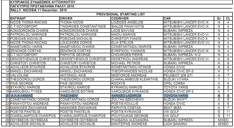 Ο Pazonen θα τρέξει στην Κύπρο με το yaris του στο RALLY NICOSIA στις 11 Δεκεμβρίου 2010. Ετσι έχει πολλές πιθανότητες να κατακτήσει πολλά ακόμα κύπελλα με σημαντικότερο αυτό της F2 (υπολείπεται δυο βαθμούς απο τον Κοσμόπουλο).
