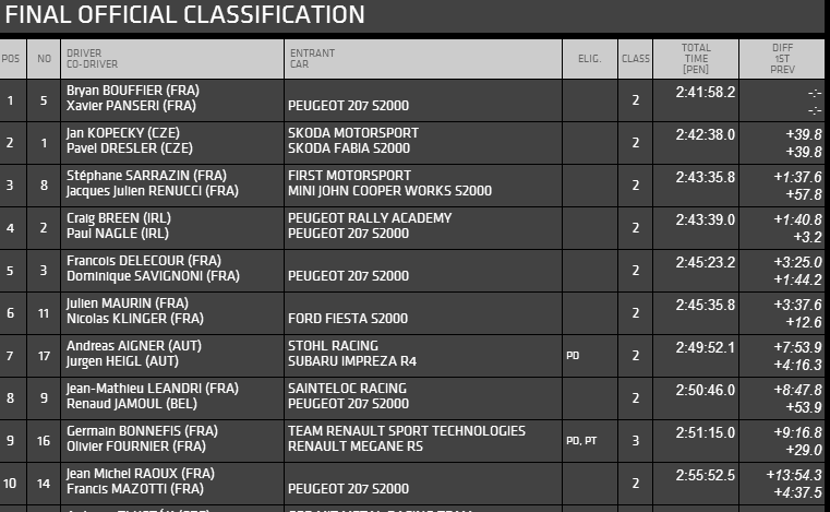 Παρακολούθησα την ss6 χθες σε live streaming. Πολυ ωραία κάλυψη οπως πάντα απο το eurosport. Ο Kopecky πρωτος με δευτερο τον Breen με 0,1'' πίσω του. Ακολούθησε ο Bufier με 7,7'' και Sarazin με 8,8'' .