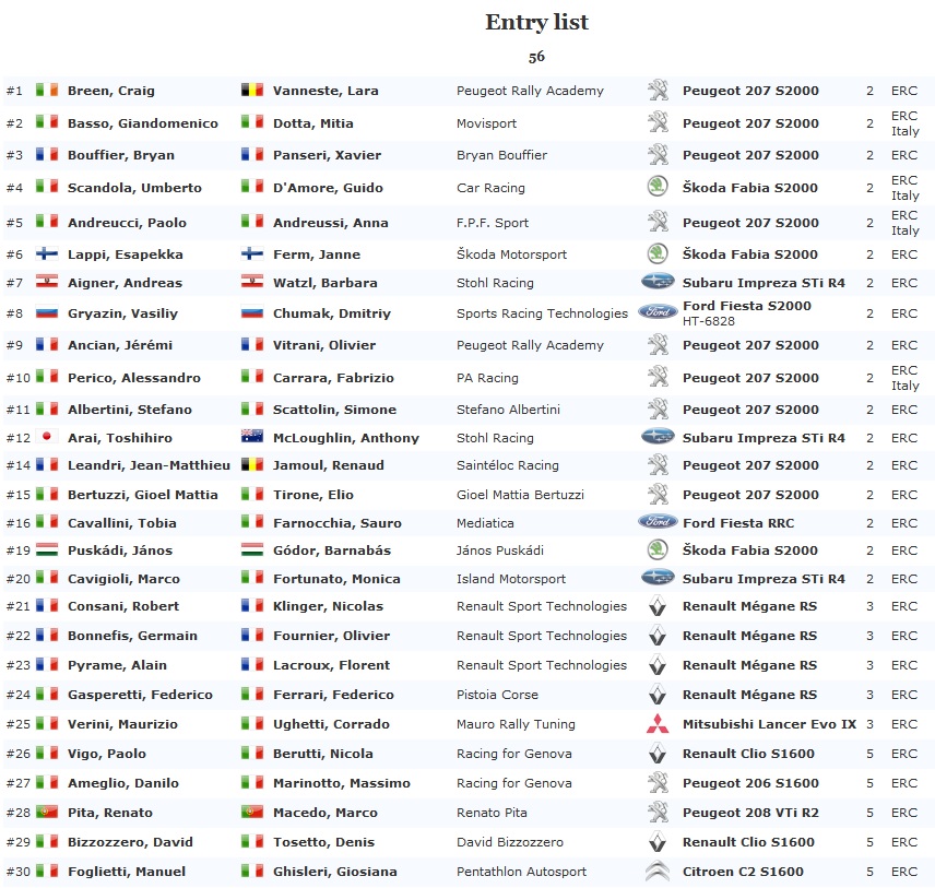 Aποτελέσματα 1ης μέρας μετά από 5 ειδικές.1. #5 Andreucci P. - Andreussi A. Peugeot 207 S2000 1:12:50.5 -:-