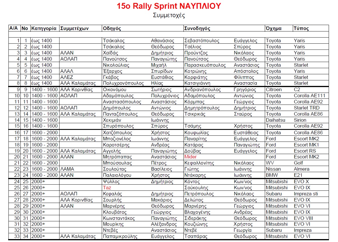 33 χωματινες συμμετοχες που σχεδον ολες τις ειδαμε και στο ραλλυ σπριντ Κορινθου στα Αθικια.Καλο αγωνα σε ολους χωρις μηχανικα προβληματα,κλαταρισματα και εξοδους.