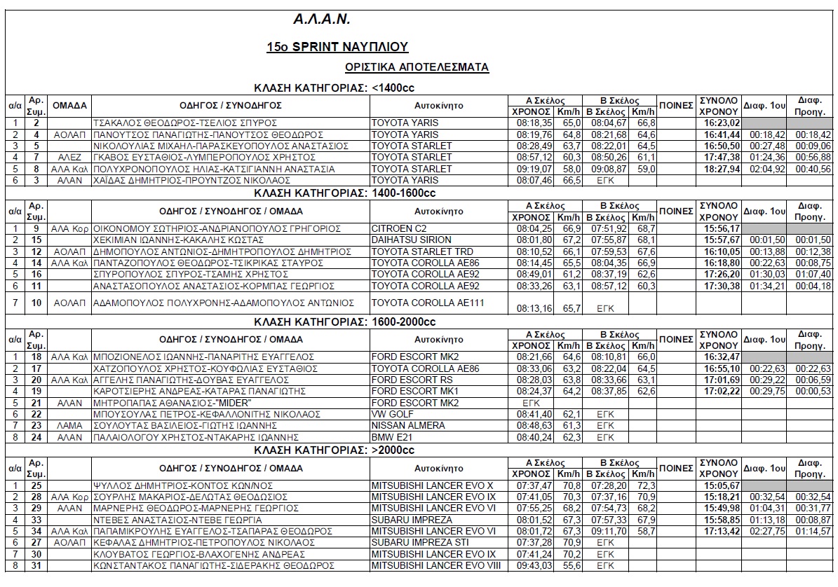 Δημοσίευση 15ο Ράλλυ Sprint Ναυπλίου (25,26/09/2010)
