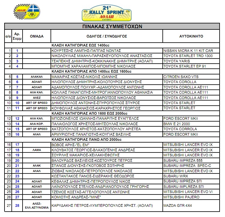 2-3 Ιουλίου 2011 το 21ο Χωμάτινο Rally Sprint, που