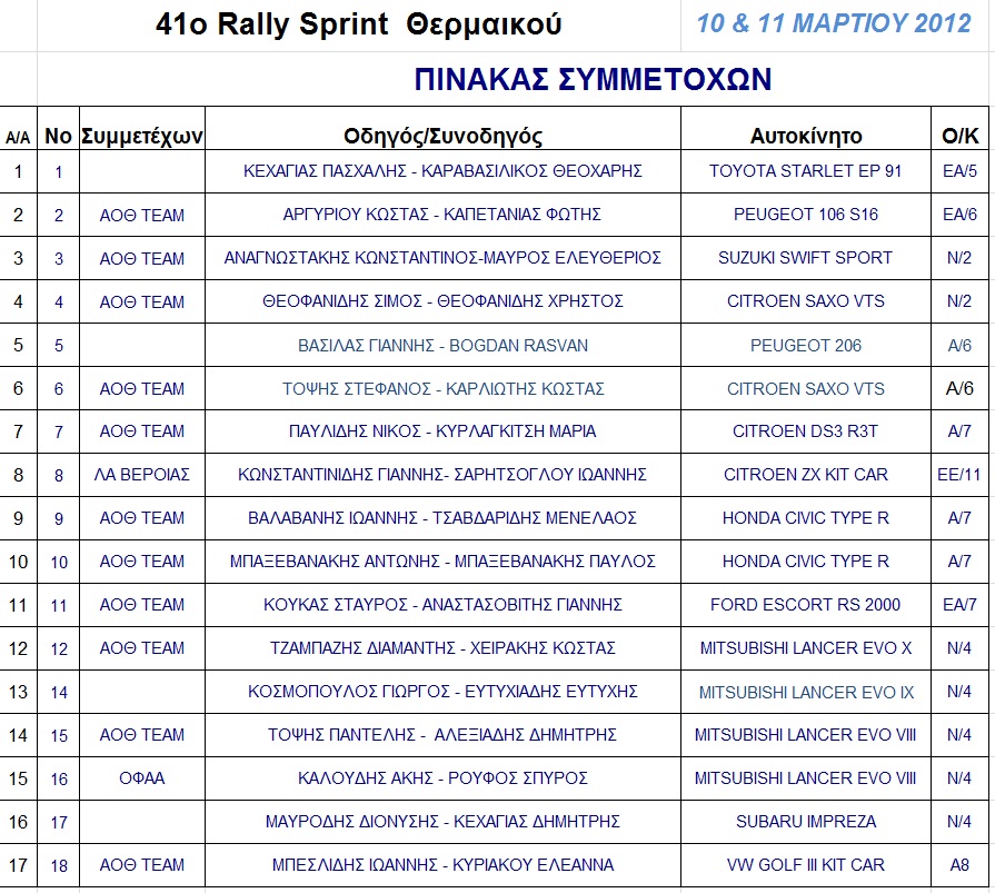 Δημοσίευση 41ο Ράλλυ Sprint Θερμαϊκού (2012)