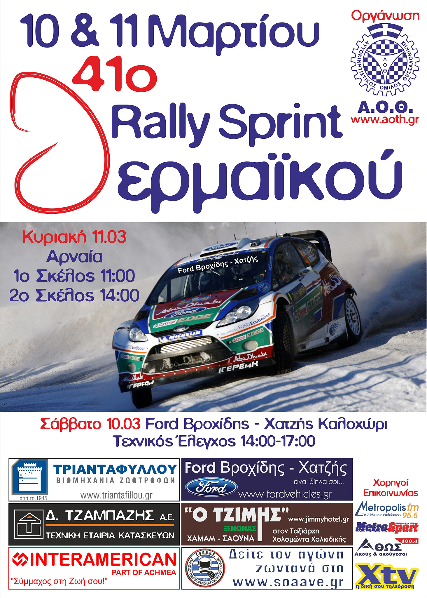 Υπόψη πως φέτος ο τεχνικός έλεγχος του αγώνα μεταφέρθηκε στις νέες εγκαταστάσεις της Ford Βροχίδης – Χατζής στο Καλοχώρι Θεσσαλονίκης. Εκεί το Σάββατο 10 Μαρτίου, από τις 14:00 έως τις 17:00 οι Τεχνικοί Έφοροι θα περιμένουν τους συμμετέχοντες για τον Έλεγχο εξακρίβωσης.