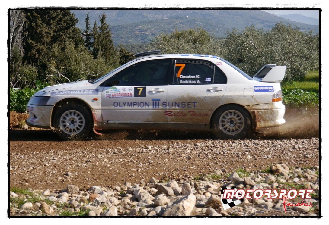 Παράθεση: 33o Rally Sprint Kορίνθου : Γ.Ακράτος ο μεγάλος νικητήςΜε την διοργάνωση της Α.Λ.Α.Κορινθίας , το 33ο RallySprintΚορίνθου ξεκίνησε το Κυπελλο Ραλι Χώματος για την νέα χρονιά.Ο αγώνας έγινε στην ειδική Κλένια και συγκέντρωσε αρκετό κόσμο υπολογίζοντας φυσικά την εποχή . Ικανοποιημένοι οι αγωνιζόμενοι από την οργάνωση του αγώνα πέρασαν ένα όμορφο Σαββατοκύριακο αφού και ο καιρός βοήθησε στο να κυλήσουν όλα καλά . Στο αγωνιστικό μέρος, νικητές της Γενικής Κατάταξης αλλά και της Ν4 οι Γιάννης Ακράτος-Βαγγέλης Ακράτος (Mitsubishi EVO) που κέρδισαν τα 2 από τα 3 σκέλη του αγώνα, στην 2η θέση οι Διονύσης Σπανός- Σωτήρης Γκότοβος (Subaru Impreza) κάνοντας τον καλύτερο χρόνο στο πρώτο πέρασμα . Το βάθρο των νικητών συμπλήρωσαν οι Πάνος Κωσταντάκος- Θεόδωρος Σιδεράκης με Subaru . Στην κατηγορία F2 νικητές οι Γιάννης Μποζιονέλος – Βαγγέλης Παναρίτης με FordEscort κερδίζοντας και την E11. Το βάθρο των νικητών στην F2 συμπλήρωσαν οι Δημήτρης Καρύδης – Γεώργιος Βότσης με Opel Corsa kit car , που κέρδισαν και την F3 , και οι ΑRMA-ARMAKIμε NissanMicraπου ήταν νικητές και στην Α5. Στον αγώνα τερμάτισαν 19 από τα 28 πληρώματα που πήραν εκκίνηση , σημαντικότερες εγκαταλείψεις των ΤΑΖ-Σούκουλη από έξοδο στο πρώτο σκέλος , των Αφων Παραδειση και του Κλουβάτου από μηχανικά προβλήματα . Την προσπάθεια της Α.Λ.Α.Κορινθίας στήριξε και φέτος ο ΔHMOΣ ΚΟΡΙΝΘΙΩΝ , με το Δήμαρχο Αλέξανδρο Πνευματικό να είναι παρών στην απονομή των επάθλων. Στους χορηγούς του αγώνα οι εταιρίες. ΙΚΤΕΟ Αutovision, Γκιώνης Κεντρο Ανακύκλωσης Οχηματων ΑΣΗΜΑΚΗΣ Ανταλλακτικά ,ενώ την για την προβολή του 33ου RallySprintΚορίνθου φρόντισαν οι 4ΤΡΟΧΟΙ , http://www.xwmatinos.gr ,BREAKFM, HΛΕΚΤΡΑ ΤV, AXIONTV, οι εφημεριδες ΠΡΩΙΝΗ , ΣΗΜΕΡΑ , η http://www.sfedona.gr, το blogKorinthosTV, ekorinthos.gr,www.peloponnisiaki.gr, mykorinthia.gr,www.off-road.gr. Η οργανωτική επιτροπή του αγώνα ευχαριστεί για την βοήθεια τους , την Ελληνική Αστυνομία , το Πυροσβεστικό Σώμα , το ΕΚΑΒ , την Εθελοντική Ομάδα Δασοπροστασίας Αθικίων & Xιλιομοδίου , την Bilseinαμορτισερ , τους κριτές και τα στελέχη του αγώνα. Κατάταξη