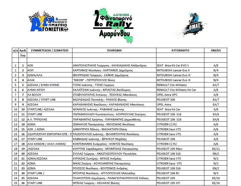 2ο Φθινοπωρινό Ράλλυ Αμαρύνθου 2014Συνημμένο: