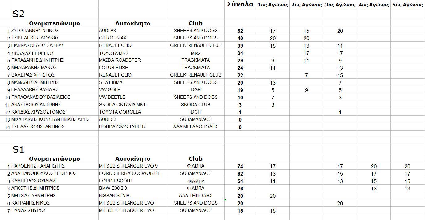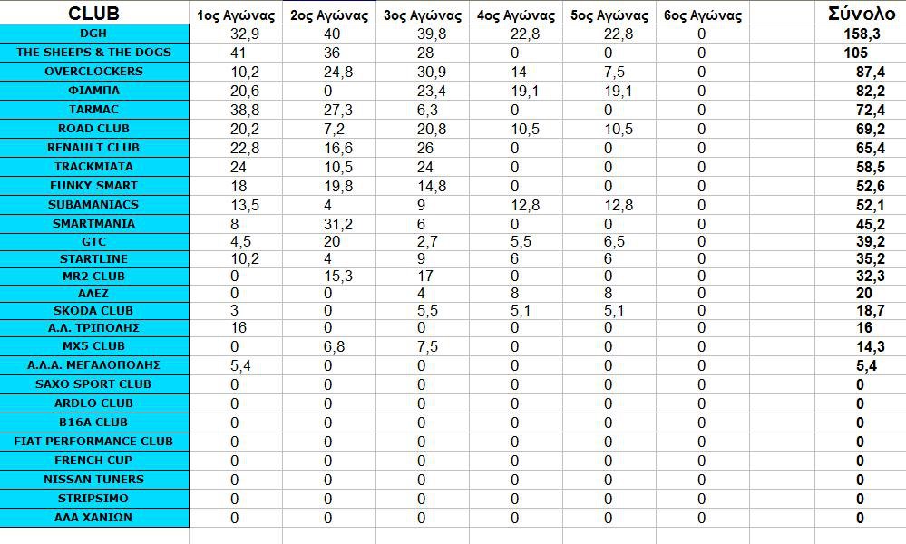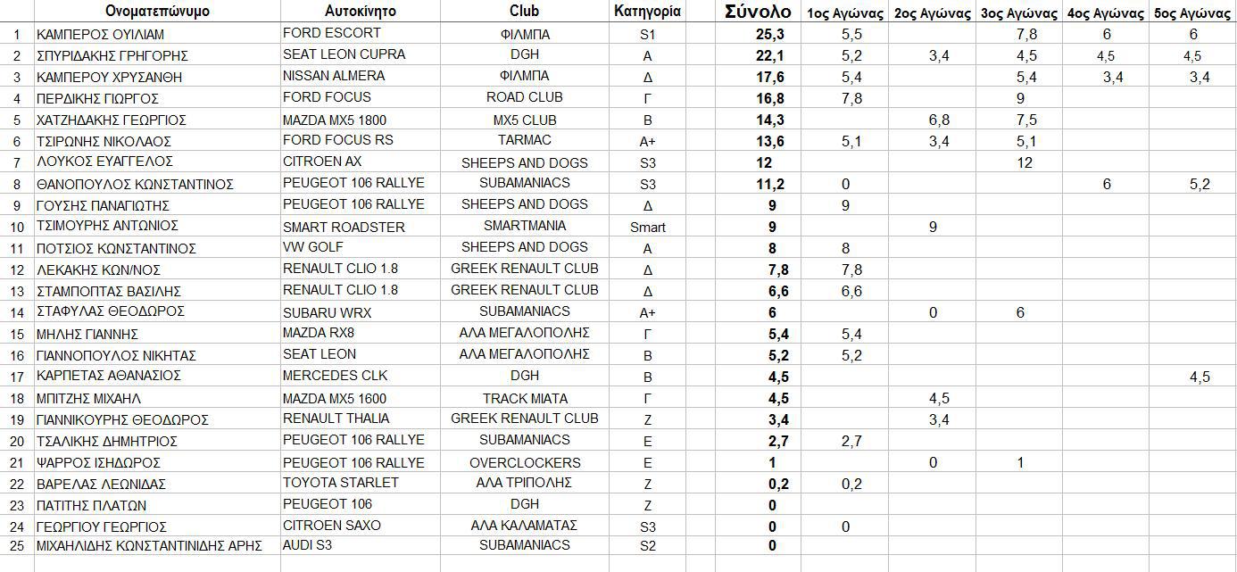 ΚΑΙ ΟΙ ΒΑΘΜΟΛΟΓΙΕΣ ΜΕΧΡΙ ΤΟΝ 5ο ΑΓΩΝΑ ΝΕΩΝ ΟΔΗΓΩΝ ΚΑΙ CLUBS