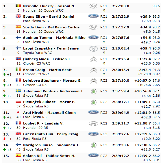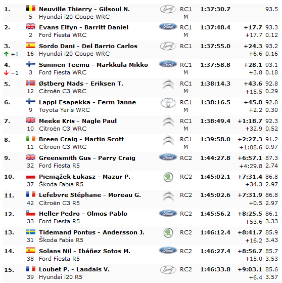 Kαταταξη μετά το πρωινο Loop: 1: Sordo 2: Meeke +4.6'' 3: Paddon +0.2''
