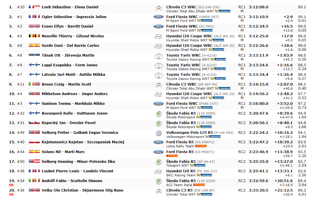 Νικητές του αγώνα οι Sebastien Loeb και Daniel Elena με Citroën C3 WRC.