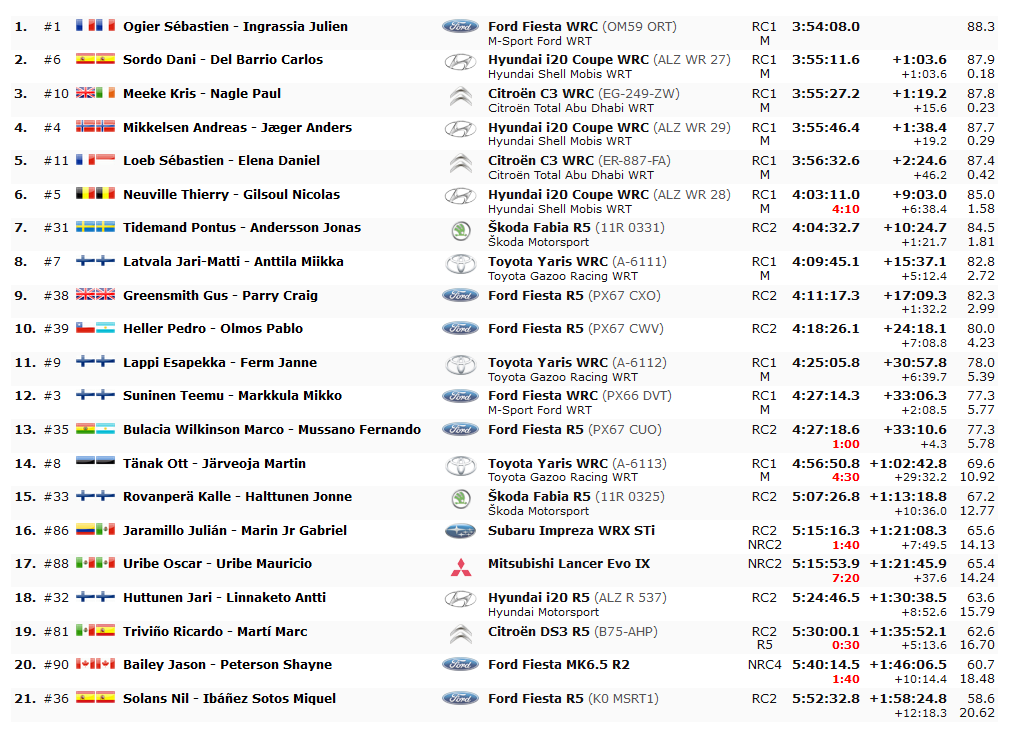 Ποινή 10 δευτερολέπτων στον Ogier στην power stage (SS22),για παραβίαση road book. Με αυτή την ποινή έχει χάσει την δεύτερη θέση που πήρε στην power stage,η M-Sport άσκησε έφεση στην απόφαση των αγωνοδικών.