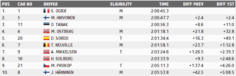 Ο Kubica παλι έξω στην SS9. Ο Τanak είχε εξοδο στην SS10 μπλοκάρωντας το δρόμο. Έπεσε κίτρινη σημαία στην ειδική. Μετα και την SS9: Συνημμένο: