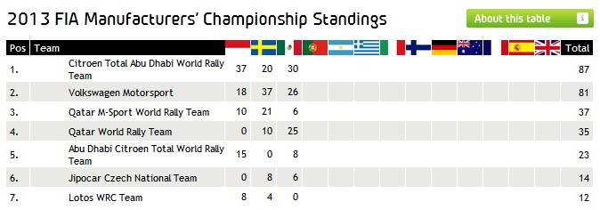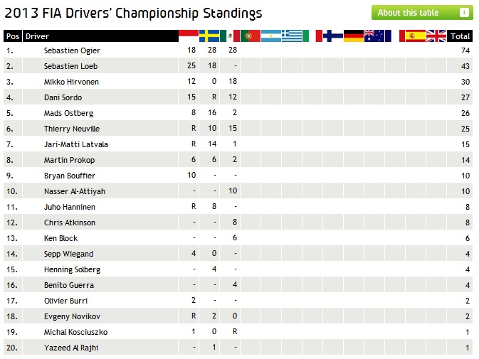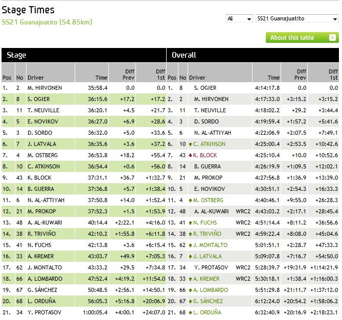 Υ.Γ 1 Φαίνεται να μην έχει αντίπαλο ο Οζιε και πάει για ενα εύκολο τίτλο. Υ.Γ 2 Σημαντική και η τρίτη θέση του Τιερί Νεβίλ καθώς είναι ο πρώτος βάθρος σε αγώνα WRC στην καριέρα του . Υ.Γ 3 Αφού τερμάτισε και ο Κεν Μπλοκ τι να πω μπράβο του,παρότι τον πέρασε ο Ατκισον την τελευταία μέρα και του πήρε την 6η θέση.