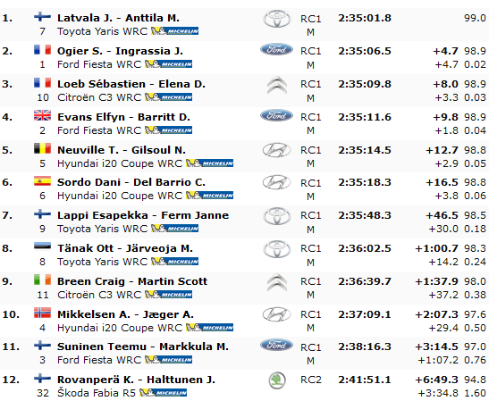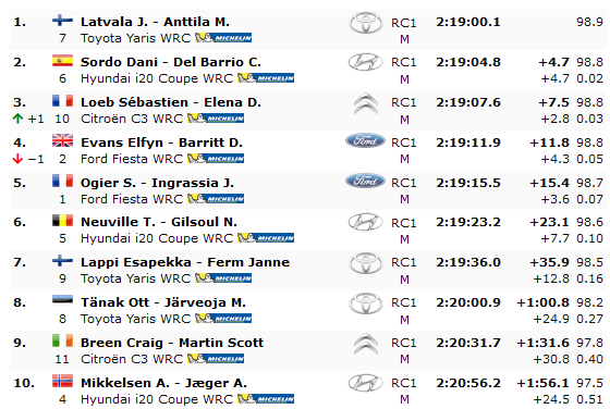 Μέσα στην μάχη ο κοντός αν και πιστεύω αν ο Ogier δεν έκανε λάθος επιλογή ελαστικών θα είχε καθαρίσει ...