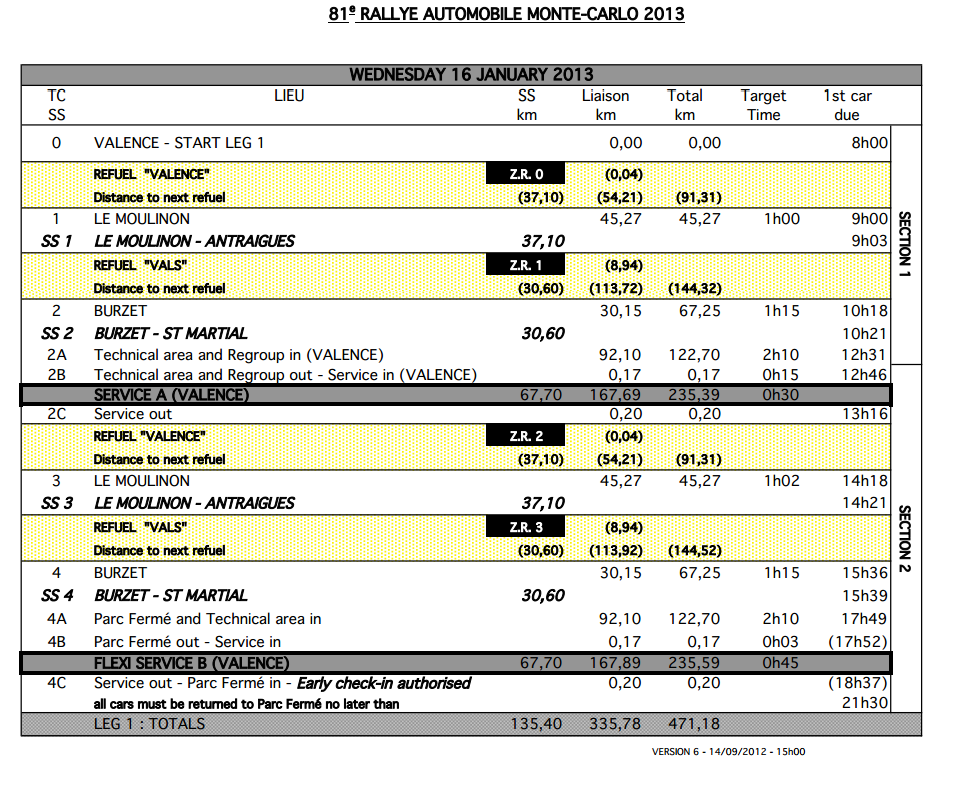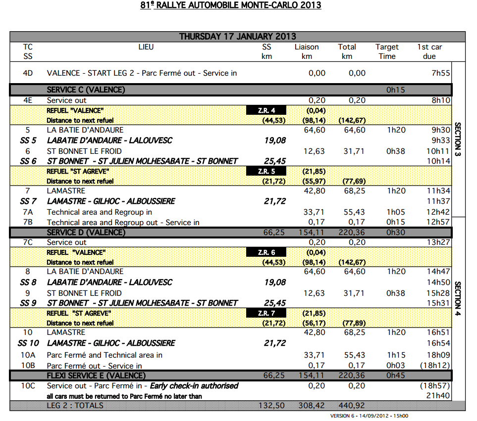 Administrative checks start at 2 p.m., on Sunday 13th, while all day Monday 14th will be reserved for scrutineering, to ensure that all are present for shakedown on Tuesday 15th. Shakedown will be located on Plateau de Lautagne, near the RD261, south of Valence, less than 10 km from the service park (which is located in the Parc des Expositions).