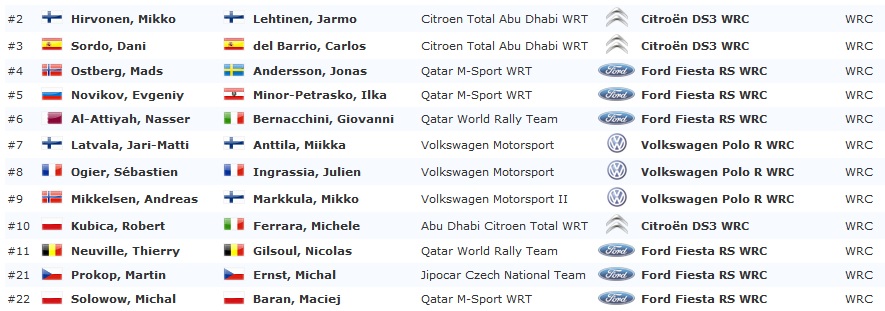 Ο sordo έφαγε ποινή 5 λεπτών μιας και ο αριθμός του σασί του DS3 δεν ήταν ίδιος με αυτόν που είχε δηλωθεί απο την Citroen..... επιτρέπονταν όπως διάβασα να χρησημοποιοηθούν απο τις ομάδες 8 διαφορετικά σασί και του Dani ήταν το 9ο ... τι άλλο θα κάνουν στον Ισπανό ....