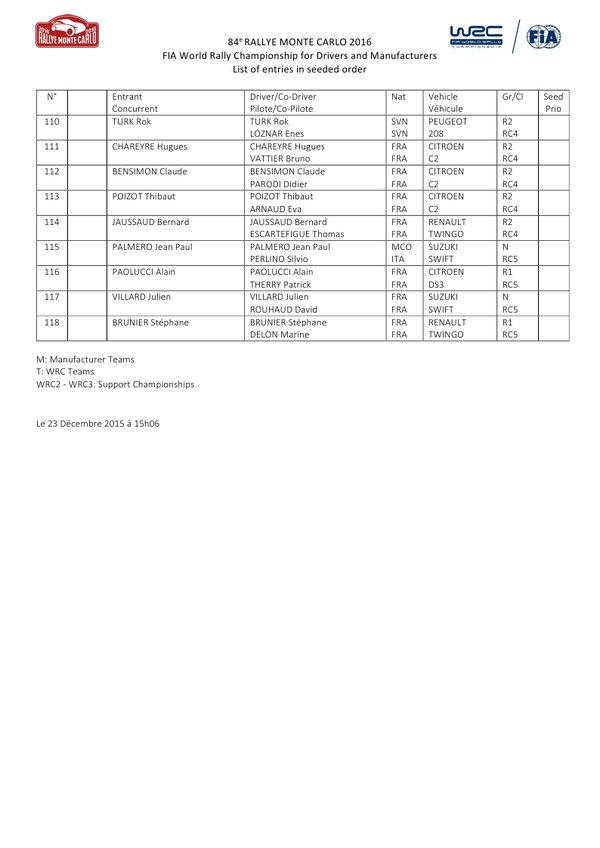 The beginning of festivities will take place the following day, Thursday 21st January, where the official start of this first of the thirteen rounds of the 2016 FIA World Rally Championship will be given at 18:10, Place du Casino in Monte-Carlo. In the program of this Thursday, two stages, Entrevaux – Val de Chalvagne – Rouaine (SS 1 – 21.25km) and Barles – Seyne-les-Alpes (SS 2 – 20.38km), to compete by night in the department of Alpes-de-Haute-Provence.