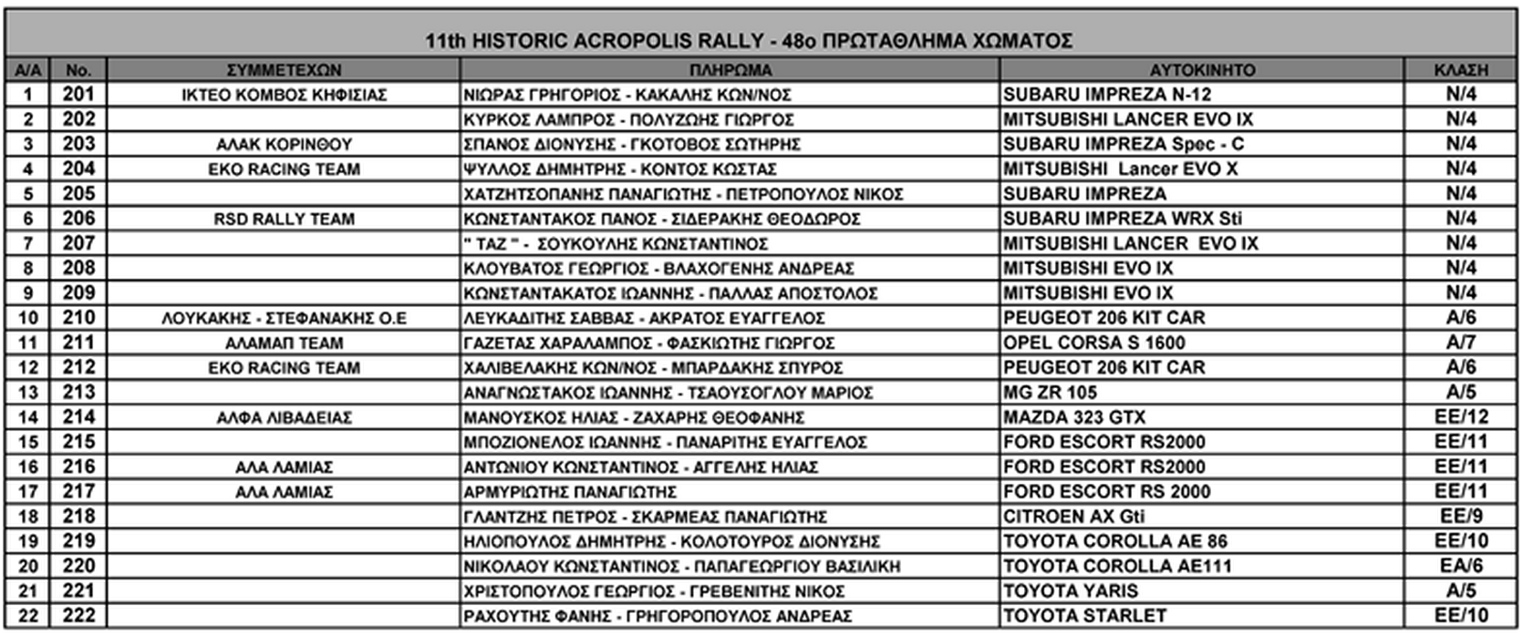 11ο Ιστορικό Ράλλυ Ακρόπολις: 22 συμμετέχοντες για το 48ο Πρωτάθλημα Χώματος